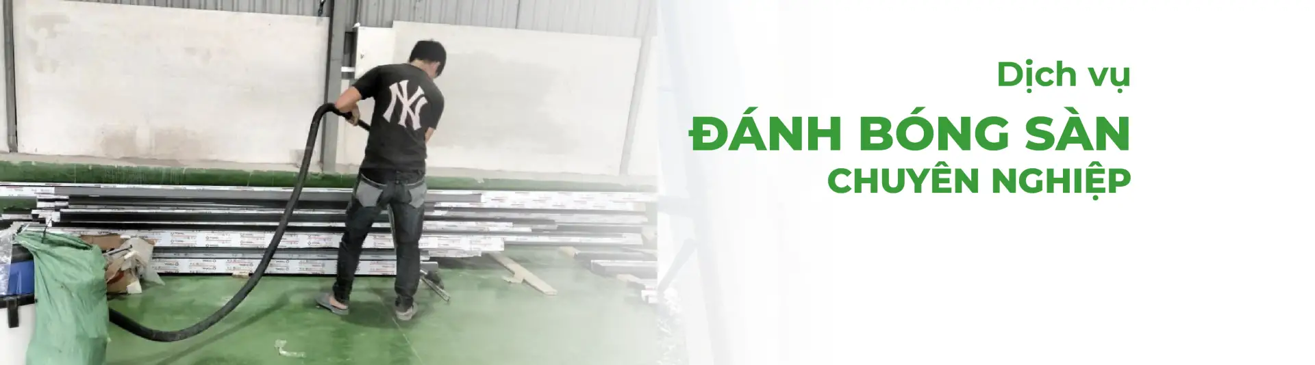 Cuối cùng, trung hòa hóa chất, lau sạch toàn bộ khu vực và hút khô để đảm bảo bề mặt sàn hoàn thiện sạch bóng – đều màu – sáng đẹp.